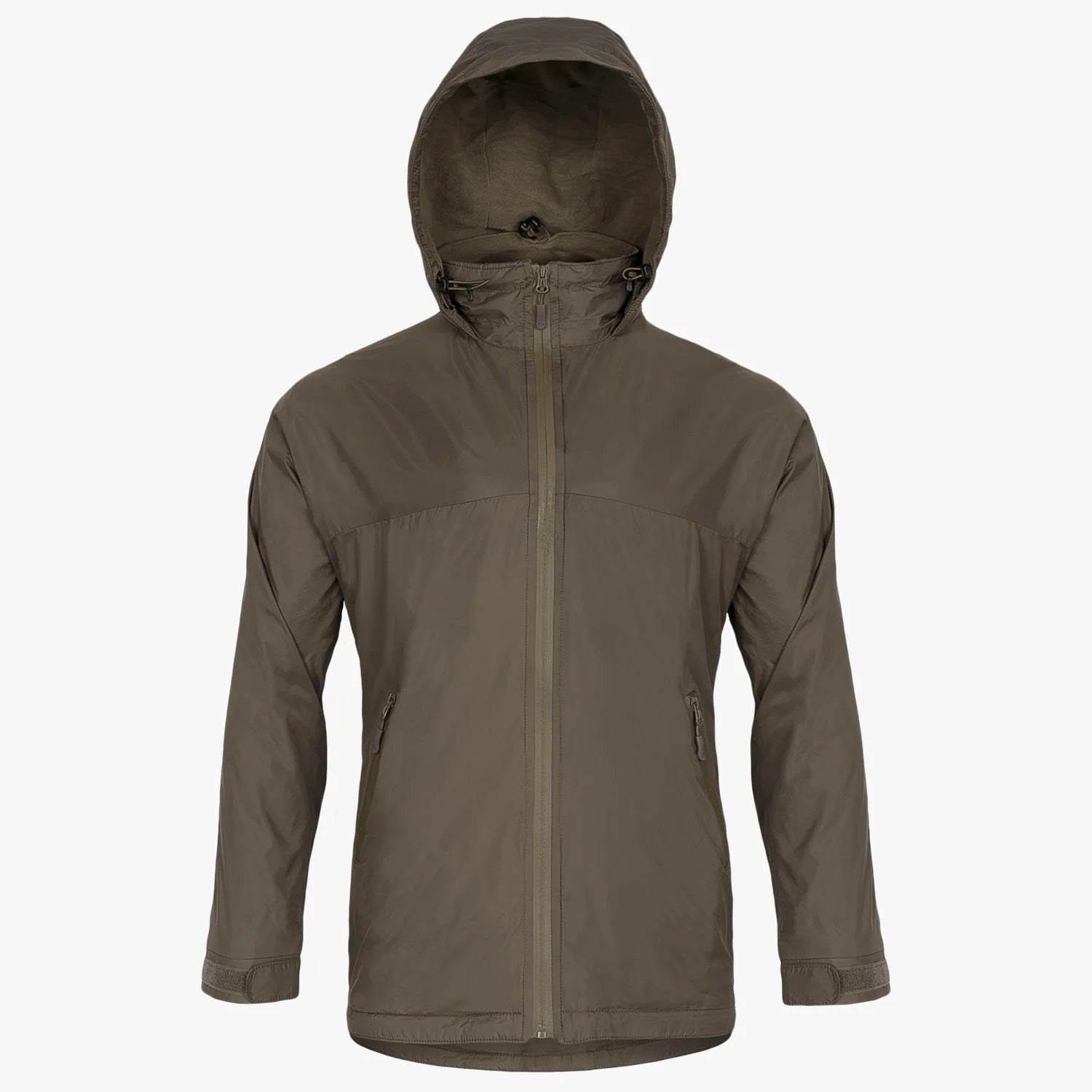 The highly rated Halo Jacket now has a full zipped version. Tactical excellence meets lightweight versatility in the Halo FZ. Made from 210T ripstop and a micro fleece lining, the Halo is extremely light, warm and windproof. Moisture protection comes from a water resistant outer coating and waterproof zips, meaning this is an outstanding piece of kit for protection from all the elements. A central zip, concealable peaked hood and a high collar make the Halo a highly versatile layer for anything from night exercises to trekking through the hills.